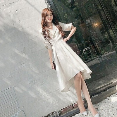 ワンピース レディース 膝丈ワンピース 春夏きれいめ 白ドレス 五分袖ワンピース 不規則 フレアスカート オシャレ 結婚式ドレス お出かけ 大人 通販 Lineポイント最大get Lineショッピング